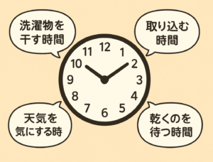 さらに、特に女性にとっては、下着を外に干すことへの防犯面の不安や、部屋干しを他人に見られることへのプライバシーの懸念も、無視できない大きなストレスです。