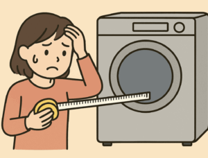 「スペック上は大丈夫だと思ったのに、いざ届いたら防水パンに収まらない」「壁のコンセントや蛇口に干渉して置けなかった」という悲劇。一人暮らしの限られたスペースでは、数センチの誤差が命取りになります。