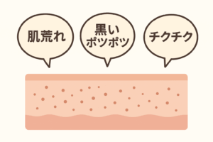 | 毛穴 | 黒いポツポツが目立つことも | 根本からケアし、目立ちにくい |
