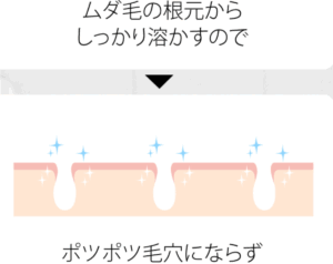 NUKUMOは、毛のタンパク質に働きかける専用の成分で、毛を根元付近からじんわりと溶かします。